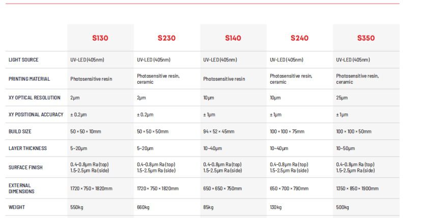 备受瞩目的microArch® S240设备荣获全球光电科技领域最高奖——"棱镜奖(Prism Award)"。该产品继承了第一代S140打印机在高精度方面的特点,具备10μm的打印精度和±25μm的加工公差。为了更好地满足客户在精密结构件加工尺寸、加工效率和加工材料等方面的需求,S240拥有更大的打印体积(100mm×100mm×75mm),最高可提升10倍以上的打印速度,能够生产更大尺寸的零部件,或实现更大规模的小部件产量。在打印材料方面,S240支持高粘度陶瓷浆料(≤20000cps)和耐候性工程光敏树脂、磁性光敏树脂等功能性复合材料,极大地满足了工业领域对产品耐用性和性能的高要求,同时也为科研领域开发新型材料提供了有力的技术支持。